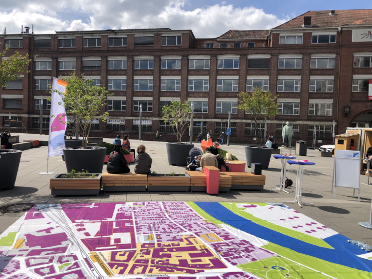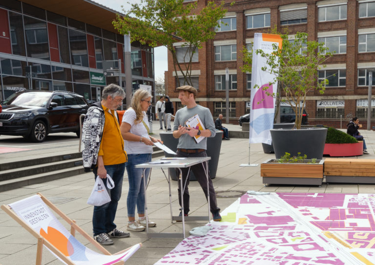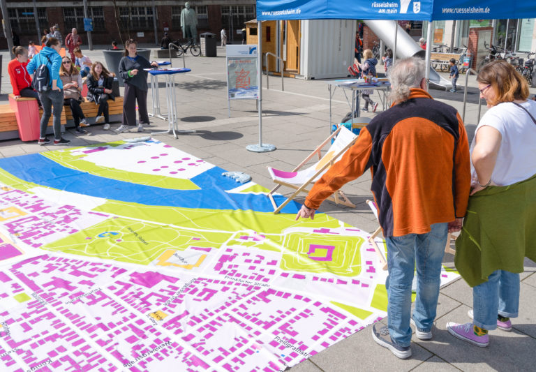 Der zweite On-Tour-Tag des Beteiligungsprozesses zur Innenstadt „Rüsselsheim, Zukunft machen, Innenstadt gestalten“ war ein voller Erfolg! Letztes Wochenende, am verkaufsoffenen Sonntag (30. April), waren wir, das Projektteam von urbanista und der Stadt Rüsselsheim am Bahnhofsplatz und tauschten uns bei sonnigem Wetter mit Ihnen, den Bürger*innen Rüsselsheim, aus und entwickelten weitere Ideen und Projektanträge für 4 Wochen Zukunft im Herbst 2023.