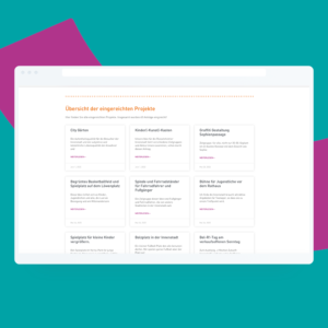 Durchstöbern Sie unsere neue Unterseite Inspirationen und Ideen! Lassen Sie sich von realisierten Projekten in anderen Städten und Ideen Ihrer Mitbüger*innen für Ihren Projektantrag inspirieren!