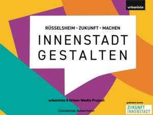 Die Stadt Rüsselsheim hat sich erfolgreich um Fördermittel des hessisches Förderprogramms „Zukunft Innenstadt“ beworben. Ein Umsetzungsbudget von 400.000 Euro gibt die Stadt über einen Projektwettbewerb direkt an die Bürger*innen weiter – es sollen gemeinsam mit allen Bevölkerungsgruppen und Akteuren konkrete Projektideen und sogenannte Realexperimente entwickelt und im Herbst in der Innenstadt getestet und realisiert werden. Wir von urbanista begleiten und kuratieren den Prozess und den Wettbewerb. Der Prozess läuft seit November 2022 und erreicht mit 4 Wochen Zukunft vom 11. September bis 08. Oktober 2023 seinen Höhepunkt.