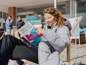 Mit der Umsetzung der Projektansätze wurde mit der Aktion „4 Wochen Zukunft“ vom 11. September bis zum 08. Oktober gestartet. Aber die Transformation der Innenstadt hat gerade erst begonnen und in der Rüsselsheimer Innenstadt ist einiges in Bewegung! Von Herbst 2023 bis Frühjahr 2024 sollen alle Bürger*innenprojekte und weitere städtische Vorhaben realisiert und sichtbar werden.